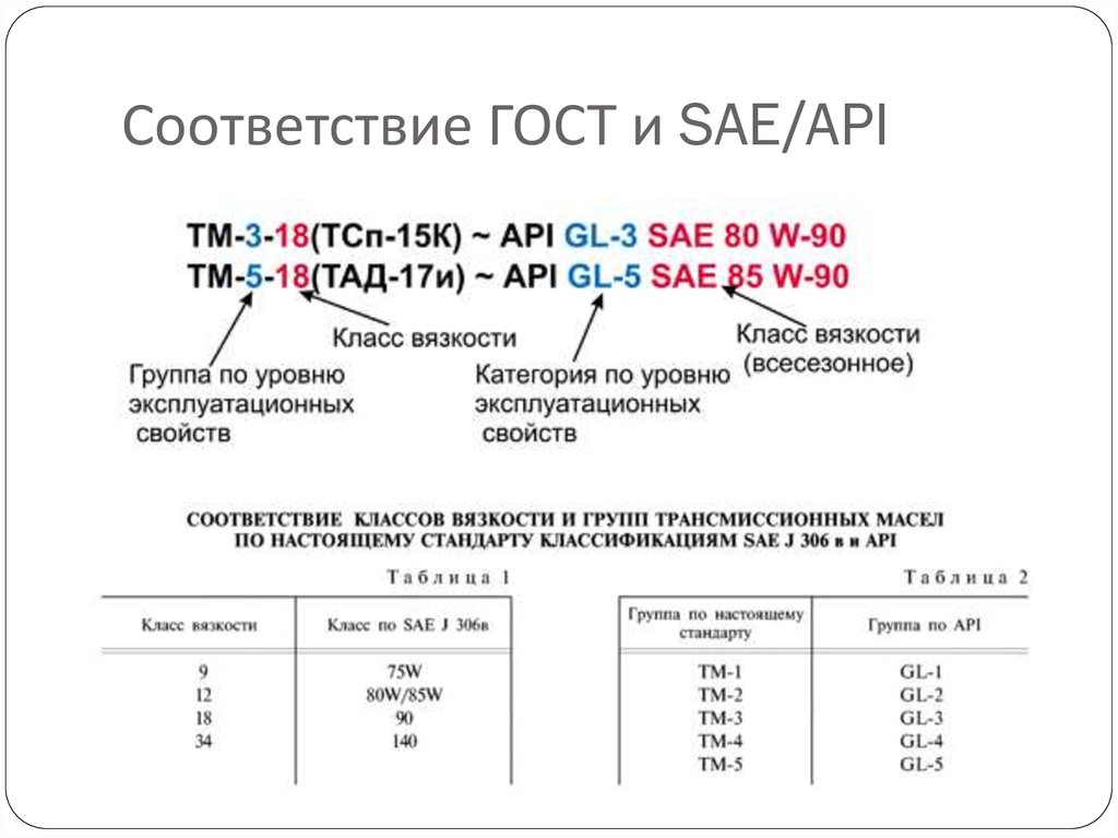 Эти масла применяются предпочтительно в ступенчатых коробках передач и рулевых механизмах, в главных передачах и гипоидных передачах с малым смещением в автомобилях и безрельсовых транспортных средствах для перевозки грузов и пассажиров и для нетранспортных работ. Гипоидные передачи, работающие в условиях высоких скоростей при малых крутящих моментах и малых скоростей при больших крутящих моментах. Обязательно наличие высокоэффективных противозадирных присадок