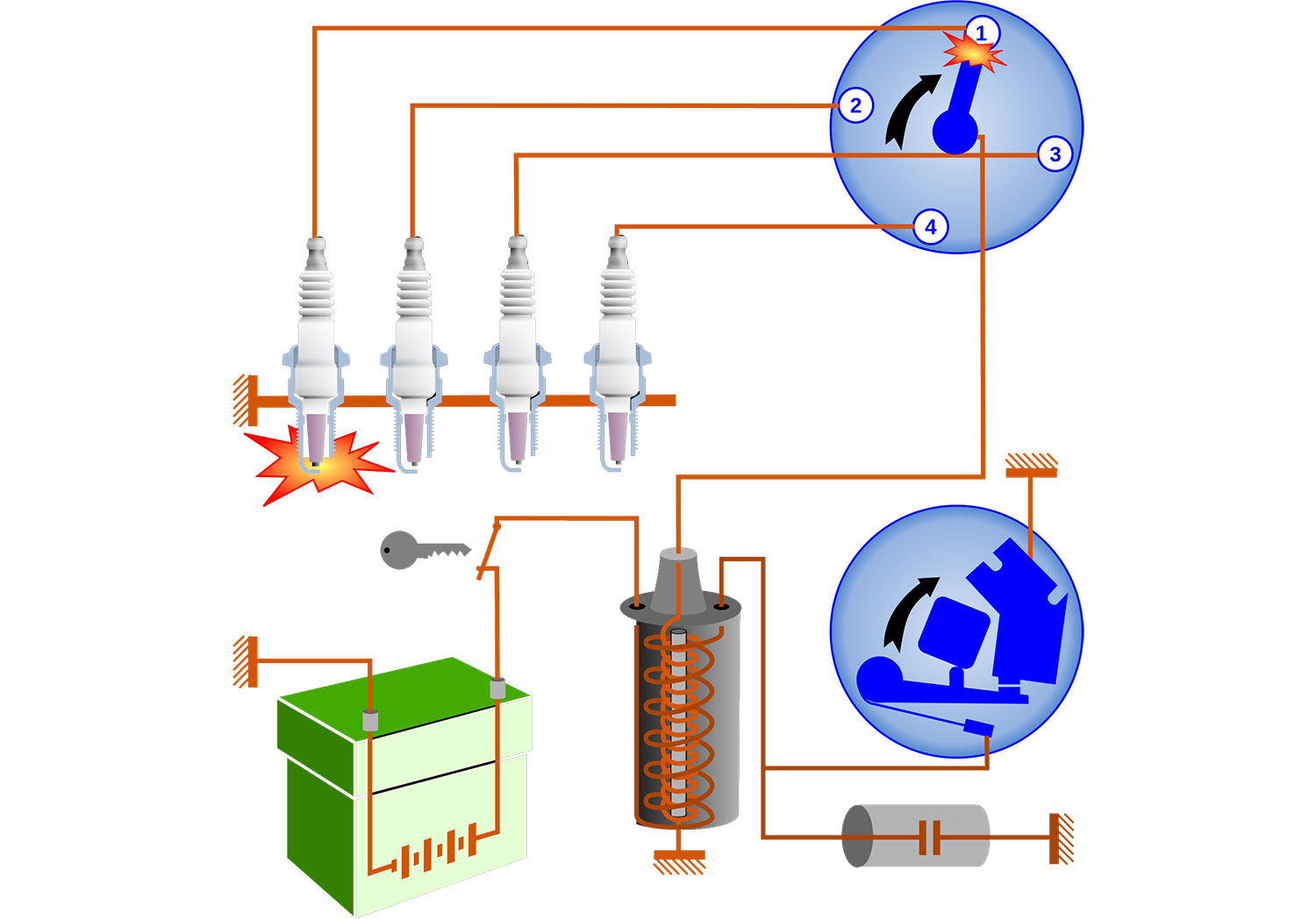 Они также имеют более одной катушки. У некоторых из них по одной катушке на цилиндр, а у других по одной катушке на каждые два цилиндра. В этих случаях используется система «отработанной искры», которая включает одновременное зажигание двух свечей зажигания, хотя только одна находится в цилиндре на такте сгорания.