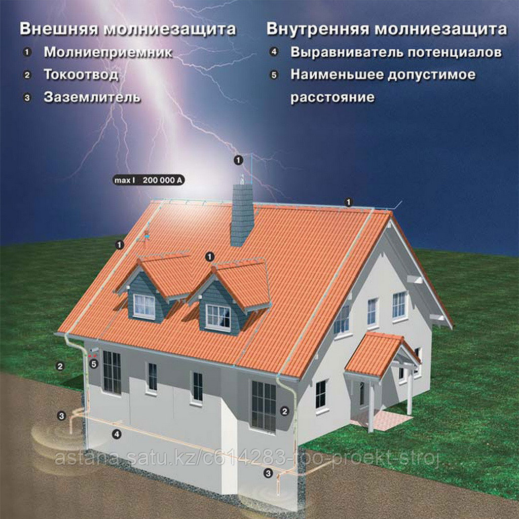 Учитываются также типы электронного и коммуникационного оборудование, которое предстоит защитить. Заземляющее устройство защитного заземления и молниезащиты должно быть общим для частного дома (ПУЭ-7, п.1.7.55), это минимизирует возможные наводки.