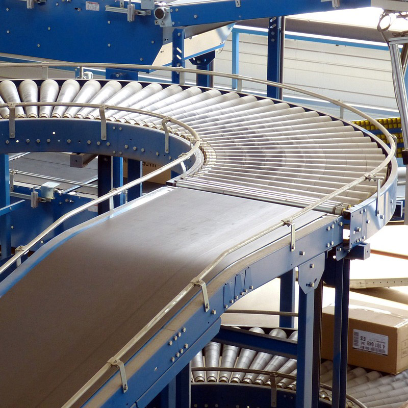 - состоит из закреплённых на каркасе роликов, отдельные ролики могут приводиться в движение, или весь каркас расположен с наклоном, как в случае с гравитационным роликовым конвейером; применяется для крупных твёрдых объектов.