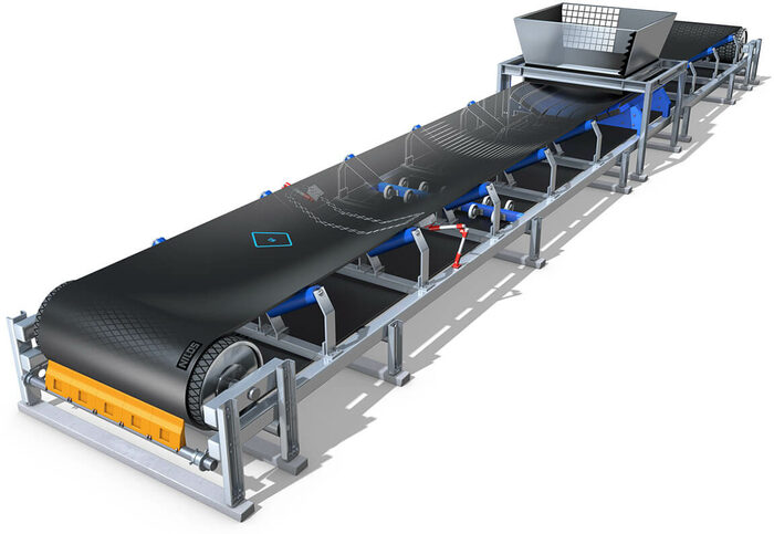 - состоит из кольцевой ленты, натяжного и приводного барабанов и опорных роликов; применяется обычно для транспортировки сыпучих веществ, возможны модификации (трубчатый[3], z-образный, поворотный на 90 и 180 градусов), связанные с деформацией ленты.