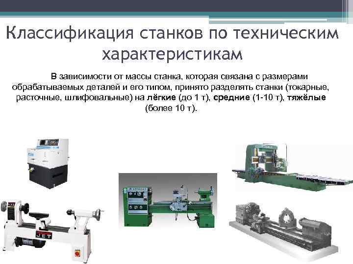 Современные станки для резки или формовки деталей с допусками плюс или минус одна десятитысячная дюйма (0,0025 миллиметра). В особых случаях прецизионные притирочные станки могут производить детали с точностью плюс-минус две миллионные доли дюйма (0,00005 миллиметра). Из-за требований к точным размерам деталей и больших сил резания, воздействующих на режущий инструмент, станки сочетают в себе вес и жесткость с деликатной точностью.