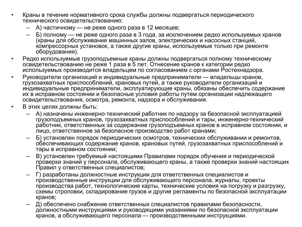 Эти записи должны заноситься в паспорт до регистрации крана в органах технадзора, а также каждый раз после назначения нового ответственного специалиста.