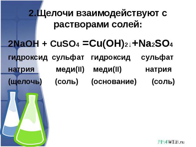 — Щелочь реагирует с кислотой с образованием соли и воды, что также известно как реакция нейтрализации.