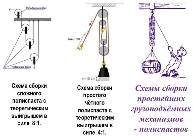 Помимо этого, в конструкции полиспастов может присутствовать разное количество блоков. Чем больше их будет, тем более тяжелый груз сможет поднять полиспаст. Ориентироваться стоит на конкретные цели, которые перед вами поставлены.