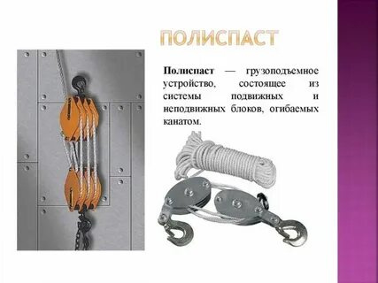 Принцип работы полиспаста использовался еще при строительстве египетских пирамид. И в наши дни вся современная грузоподъемная техника основана на работе полиспастов.