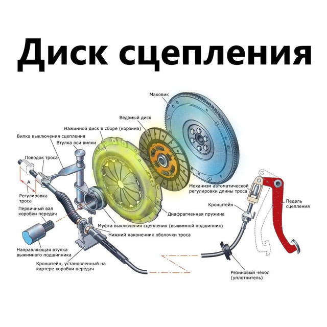 Хотя это может показаться сложной работой, с точки зрения автомобильного оборудования сцепление является относительно простым устройством. По сути, он состоит из трех основных частей: диска сцепления, нажимного диска и диафрагменной пружины.