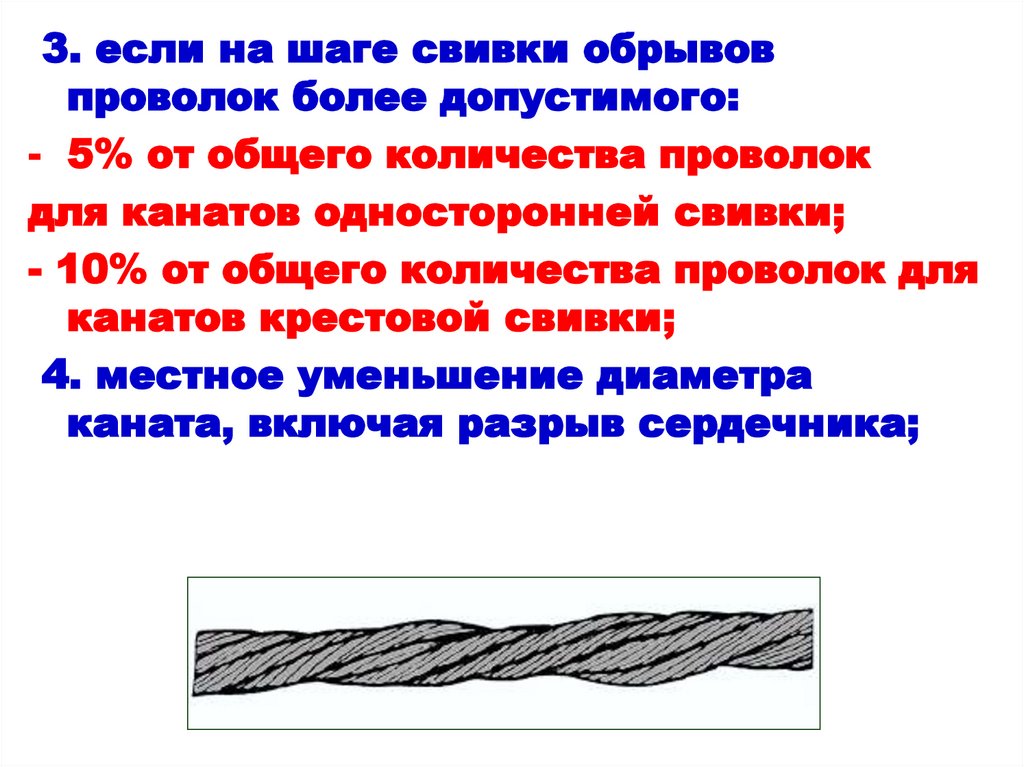 Если трос считается опасным, его необходимо изъять из эксплуатации, поместить в карантин и заменить.