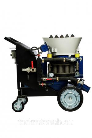 ускоритель схватывания) добавляется в сопло. Все сопла имеют съемные наконечники, которые, как правило, имеют меньший диаметр, чем шланг для того чтобы увеличить скорость нанесения смеси. Форма и размер наконечника зависят от того какую поверхность торкрета необходимо получить. Короткие наконечники дают широкий «факел» набрызга, длинные — узкий.