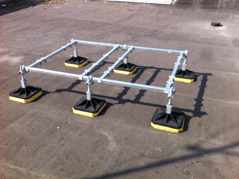 Поддерживает ребристую прочную опору с помощью формованной композитной колонны. Колонна имеет заклепки в двух точках, расположенных на большом расстоянии друг от друга, к двойной опоре, поддерживающей опору в нужном положении.