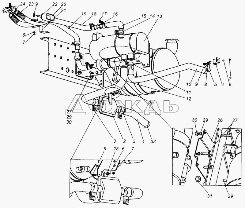 Трубки впаяны в бачки. Верхний бачок имеет горловину, закрываемую герметичной пробкой и снабженную пароотводящей трубкой. Бачки имеют патрубки, соединяющие посредством гибких резино-тканевых шлангов радиатор с остальными агрегатами системы охлаждения.