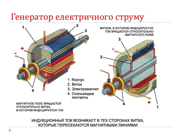 Простейшая схема генератора переменного тока представляет собой проволочную катушку, совершающую вращение в магнитном поле. Альтернативный вариант — когда катушка остаётся недвижима, а её пересекает магнитное поле. В обоих случаях будет вырабатываться электрическая энергия. Пока продолжается движение, в проводнике вырабатывается переменный ток. Генераторы применяются для выработки тока во всем мире. Они являются частью глобальной системы электроснабжения Земного шара.