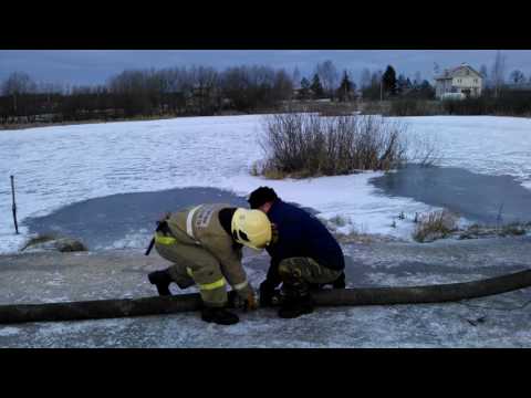 После этого опускается на колено, снимает колпачок стояка гидранта, берет колонку за напорные патрубки ставит на стояк так, чтобы гнездо рукоятки попало на квадрат клапана гидранта, и вращает ее по часовой стрелке до отказа (5,5-6 полуоборотов).