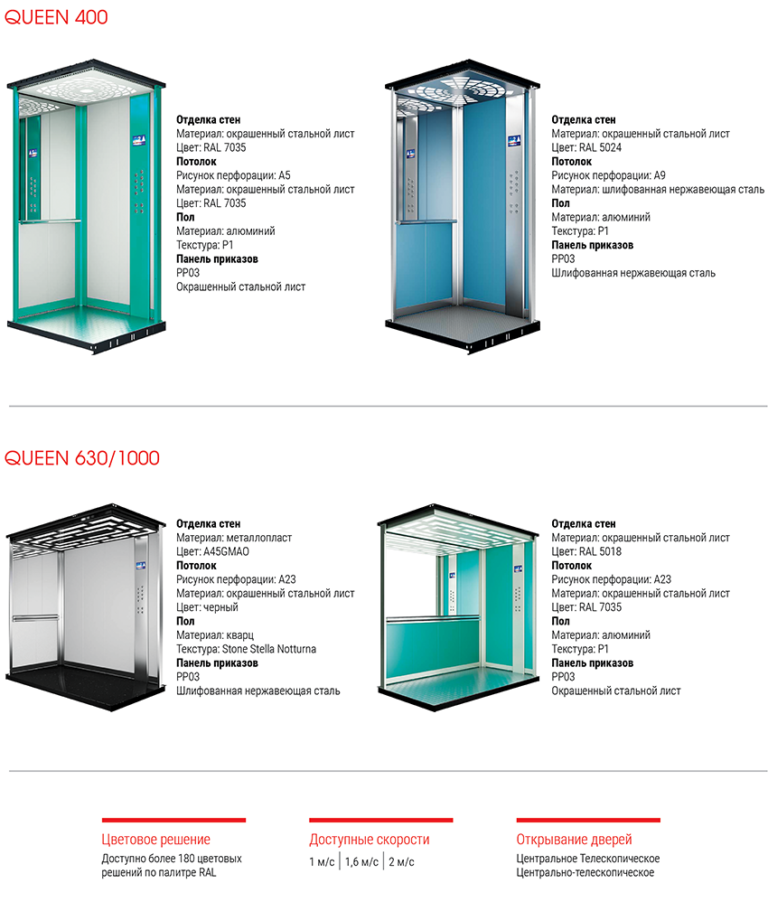 Вся конструкция окрашивается полимерной порошковой краской в цвета по каталогу RAL. По запросу возможно изготовление платформы под отделку любыми напольными покрытиями. Также возможно изготовление всей конструкции из нержавеющей стали.