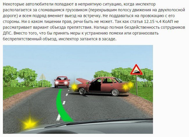 Водитель при объезде должен предвидеть все эти ситуации, и если появятся какие-то предположения в бострении обстановки, лучше подать звуковой сигнал 9 ie эт0 не запрещено) и увеличить интервал объезда.
