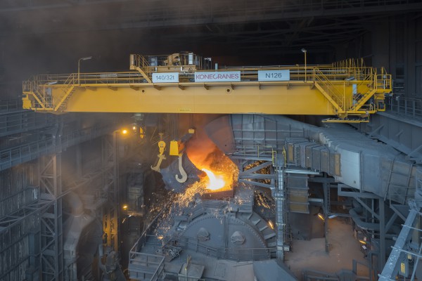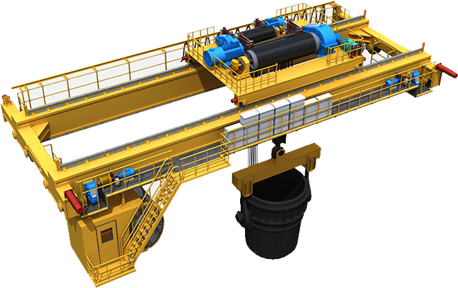 Особенностью мульдозавалочного крана является раздельное расположение рельсовых путей, по которым перемещаются тележки, и наличие колонны с расположенными на ней механизмами.