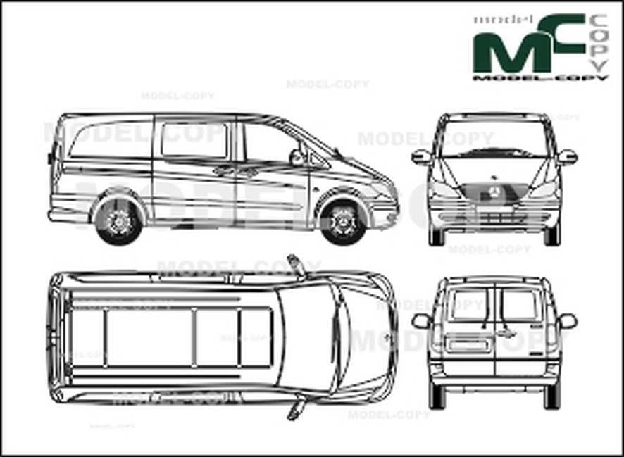 Vito второго поколения поставляется с тремя вариантами длины кузова (самый короткий Compact — 4748 мм; Long — 4993 мм; самый длинный Extralong — 5223 мм), двумя размерами колесной базы (3200 и 3430 мм), двумя исполнениями крыши (низкой и высокой, с полезным объемом от 4.65 до 6.49 м3, длиной грузового отсека 2224-3099 мм) и пятью двигателями мощностью от 88 до 218 л.с. Кстати, с 2005 года появится средний вариант крыши. Одним из наиболее привлекательных должен стать так называемый Panel van — фургон с полезным объемом кузова 6.