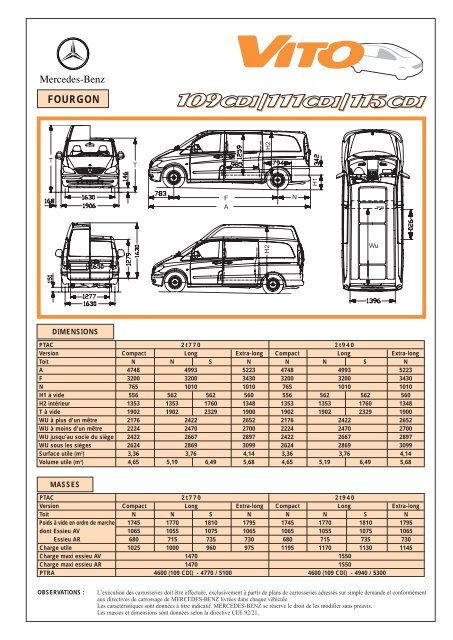 Использование новой системы переднего привода и небольшого дизельного мотора позволила инженерам сократить вес фургона Вито в среднем варианте длины в начальном исполнении до 1761 кг.