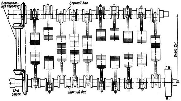 Полноопорный коленчатый вал с общей шатунной шейкой для каждой пары шатунов