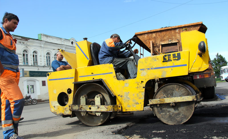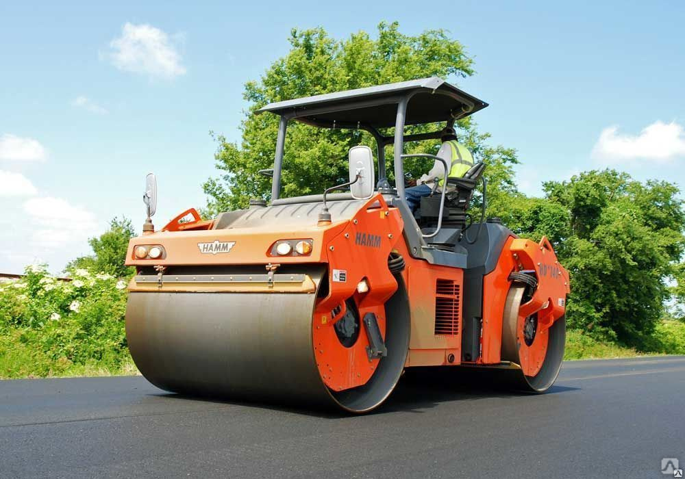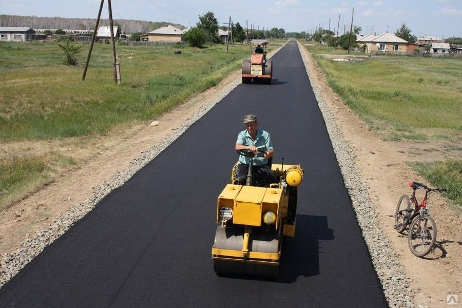 После укладки асфальта поверхность выравнивается и уплотняется.