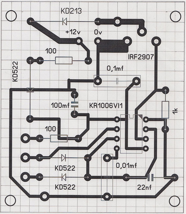 Для дальнейшей работы нужно скачать архивный файл, размещенный в конце статьи, разархивировать его и распечатать. На глянцевой бумаге печатают чертеж регулятора (файл termo1), а монтажный чертеж (файл montag1) — на белом листе офисной (формат А4).
