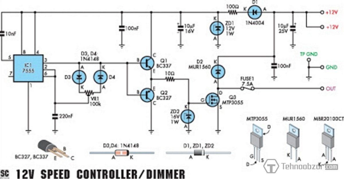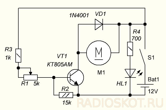 Регулятор оборотов двигателя постоянного тока схема на 12 вольт