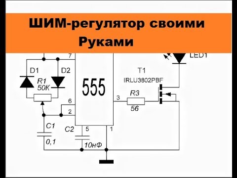 Эта самодельная схема может быть использована в качестве регулятора скорости для двигателя постоянного тока 12 В с номинальным током до 5 А или как диммер для 12 В галогенных и светодиодных ламп мощностью до 50 Вт. Управление идёт с помощью широтно-импульсной модуляции (ШИМ) при частоте следования импульсов около 200 Гц. Естественно частоту можно при необходимости изменить, подобрав по максимальной стабильности и КПД.
