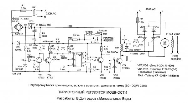Схема управления электродвигателем постоянного тока 12в. Самостоятельное изготовление регулятора оборотов электродвигателя
