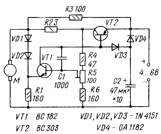 Регулирование оборотов двигателя постоянного тока схема на 6 вольт