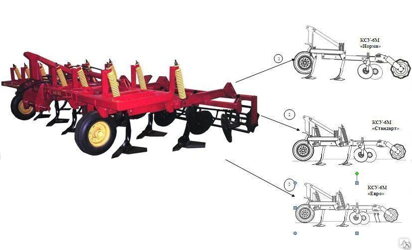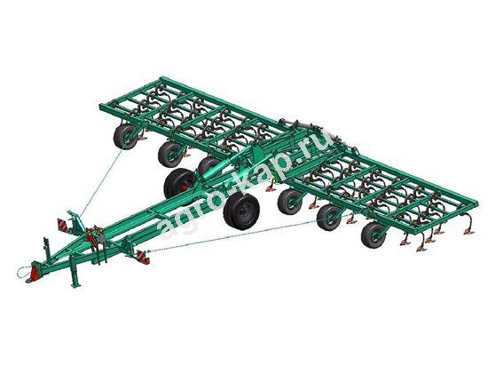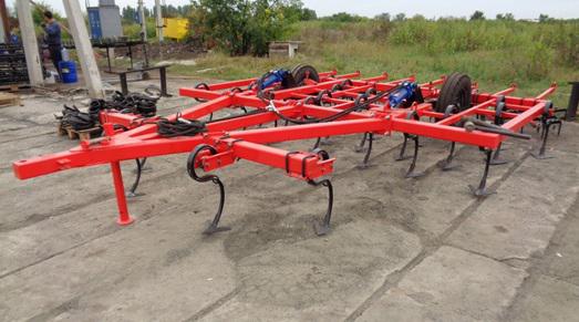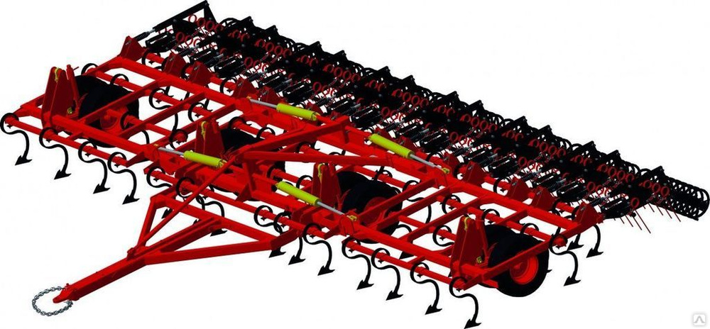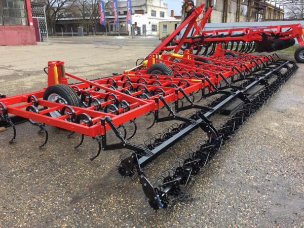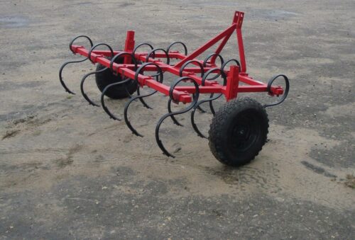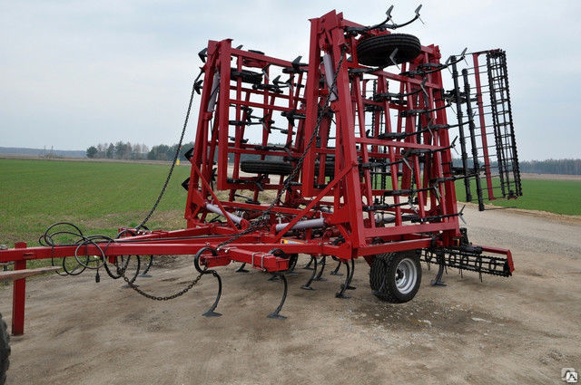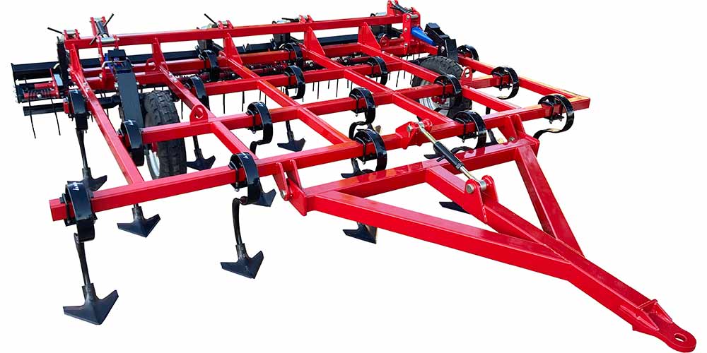 Широкий контур соединяет различные крестообразные особи, каждая с парой прикрепленных зубцов. Упряжь для сцепки расположена на переднем конце культиватора. Культиватор имеет несколько колес для удобства. Чтобы осадка была ровной и равномерной, он все время приводится в движение двумя колесами. Изменения вносятся в высоту сцепки, чтобы гарантировать, что основной край остается ровным в диапазоне глубины.