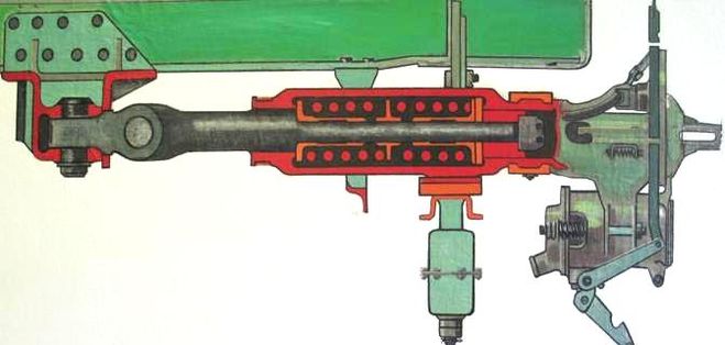 Процесс отключения сцепления происходит за счет трех рычагов, которые дополнительно снабжены регулируемыми болтами. Механизм имеет механический привод отключения и состоит из нажимной педали, толкателя и двух кранов.