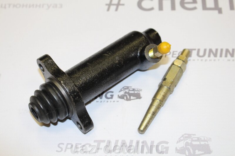 Напарник ключом на восемь выворачивает фитинг примерно на пол-оборота. В этот момент педаль упадет, а из штуцера пойдет жидкость с пузырьками воздуха. В тот момент, когда педаль коснется упора и подача жидкости прекратится, следует затянуть штуцер и повторить процедуру прокачки. Делать это необходимо до тех пор, пока из штуцера не прекратится поступление жидкости с воздушными образованиями. Во время прокачки системы нужно следить за уровнем жидкости в расширителе, чтобы заново сделать привод. Такая же проблема может возникнуть при смене диска сцепления УАЗ-452, так как весь механизм сцепления тот же.