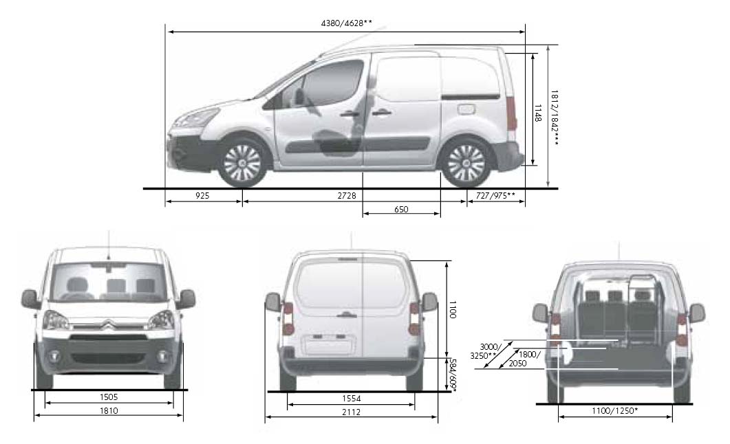 Важно: колесная база автомобиля — это расстояние между центральными точками переднего и заднего колеса. Для Peugeot Partner она варьируется от 2690 до 2728 (мм), что указывает на короткую колесную базу.