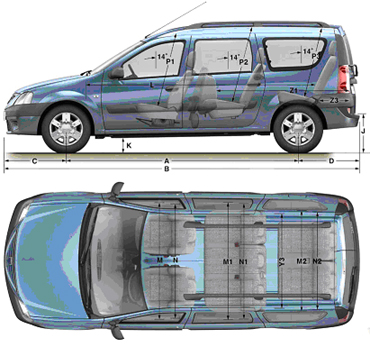 L min (мм) Минимальная габаритная длина автомобиля для разных модификаций Peugeot model