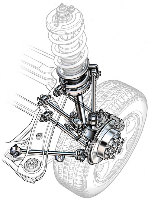 Кроме того, горизонтальная ориентация подвески «съедает» место под капотом, а также в багажном отсеке, если речь о задней подвеске. Как следствие, двухрычажную подвеску сейчас почти нереально встретить на переднеприводных компактах с поперечным расположением мотора. Затрудняет такой тип подвески и проектирование сминаемых при ударе зон кузова.