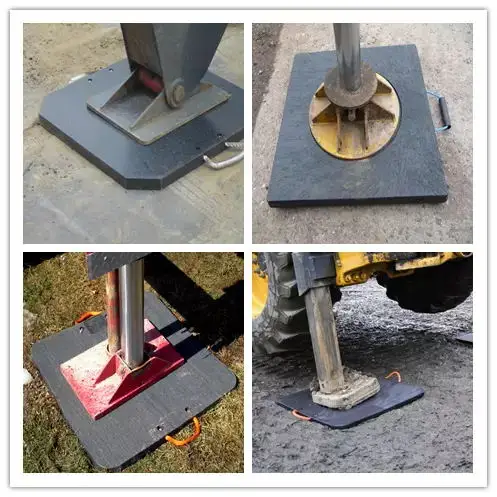 При установке выносных опор крана К-162 в рабочее положение под подпятники подкладывают подкладки из деревянных брусьев или толстых досок.