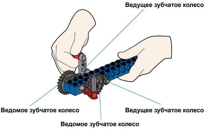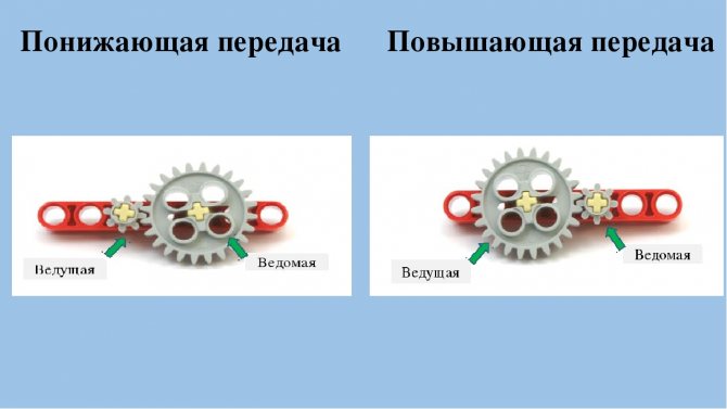 Зубчатые колёса обычно используются памрами с разным числом зубьев с целью преобразования вращающего момента и числа оборотов валов на входе и выходе. Колесо, к которому вращающий момент подводится извне, называется ведущим, а колесо, с которого момент снимается – ведомым. Если диаметр ведущего колеса меньше, то вращающий момент ведомого колеса увеличивается за счёт пропорционального уменьшения скорости вращения, и наоборот. В соответствии с передаточным отношением, увеличение крутящего момента будет вызывать пропорциональное уменьшение угловой скорости вращения ведомой шестерни, а их произведение – механическая мощность – останется неизменным. Данное соотношение справедливо лишь для идеального случая, не учитывающего потери на трение и другие эффекты, характерные для реальных устройств.