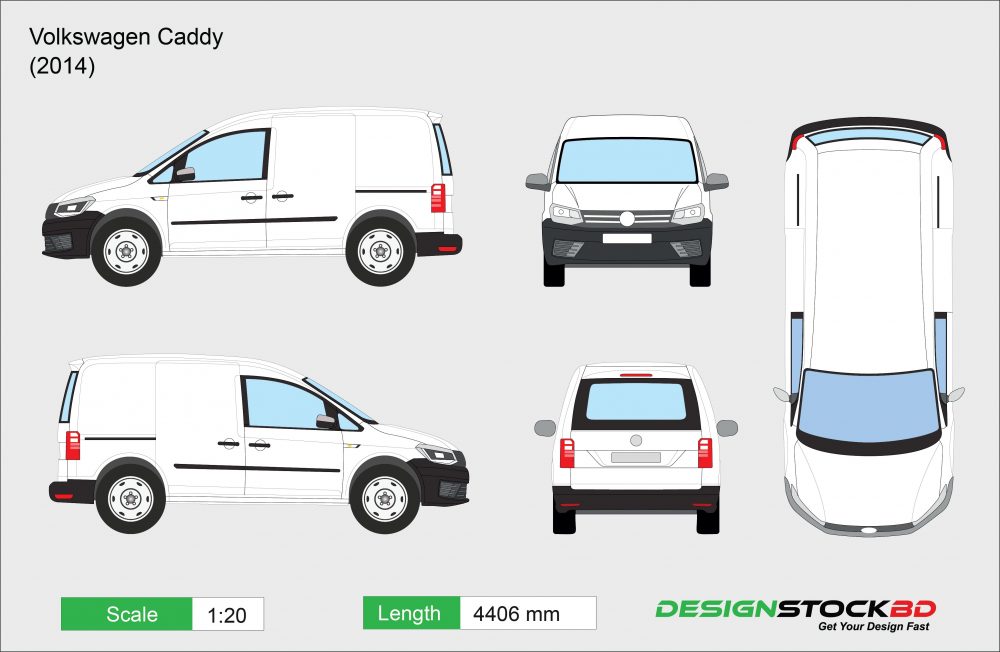 Volkswagen Caddy имеет длину от 4405 мм (173,43 дюйма) до 4878 мм (192,05 дюйма), ширину от 1793 мм (70,59 дюйма) до 1855 мм (73,03 дюйма), ширину 1798 мм (70,79 дюйма). и 1836 мм (72,28 дюйма) в высоту, в зависимости от варианта.