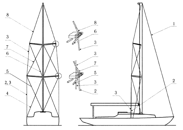 Стеньга с мачтой изготавливается обычно как единое целое и имеет свой такелаж.
