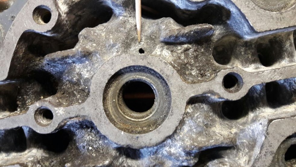 В некоторых случаях, например в головках Dodge 318 Magnum, трещину между седлами клапанов часто можно устранить с помощью одного штифта из мягкой стали с потайным заплечиком. В этом случае лучше всего подходит стальной штифт. потому что он может выдерживать нагрев лучше, чем чугунный штифт.После того, как трещина была устранена, седла могут быть
