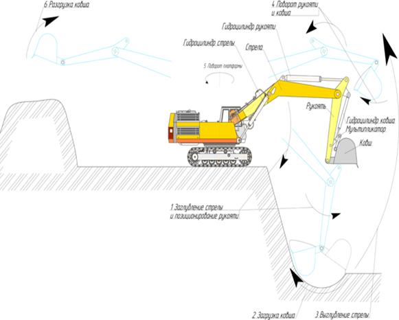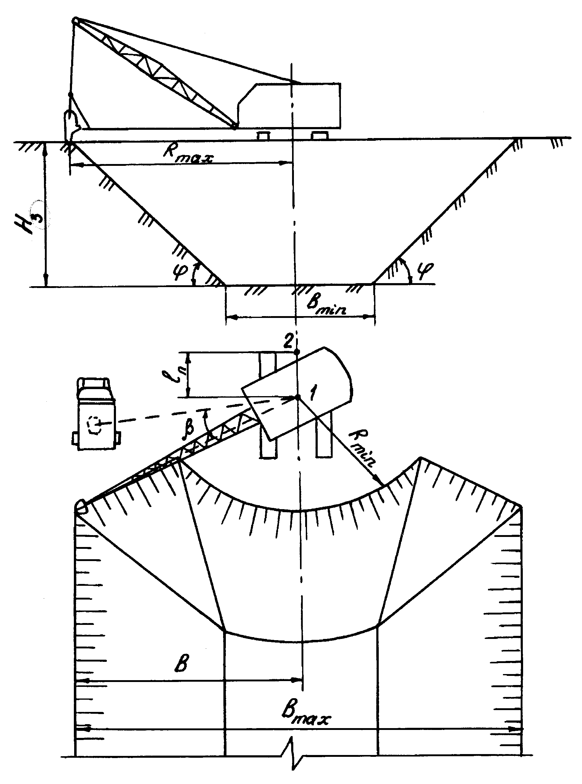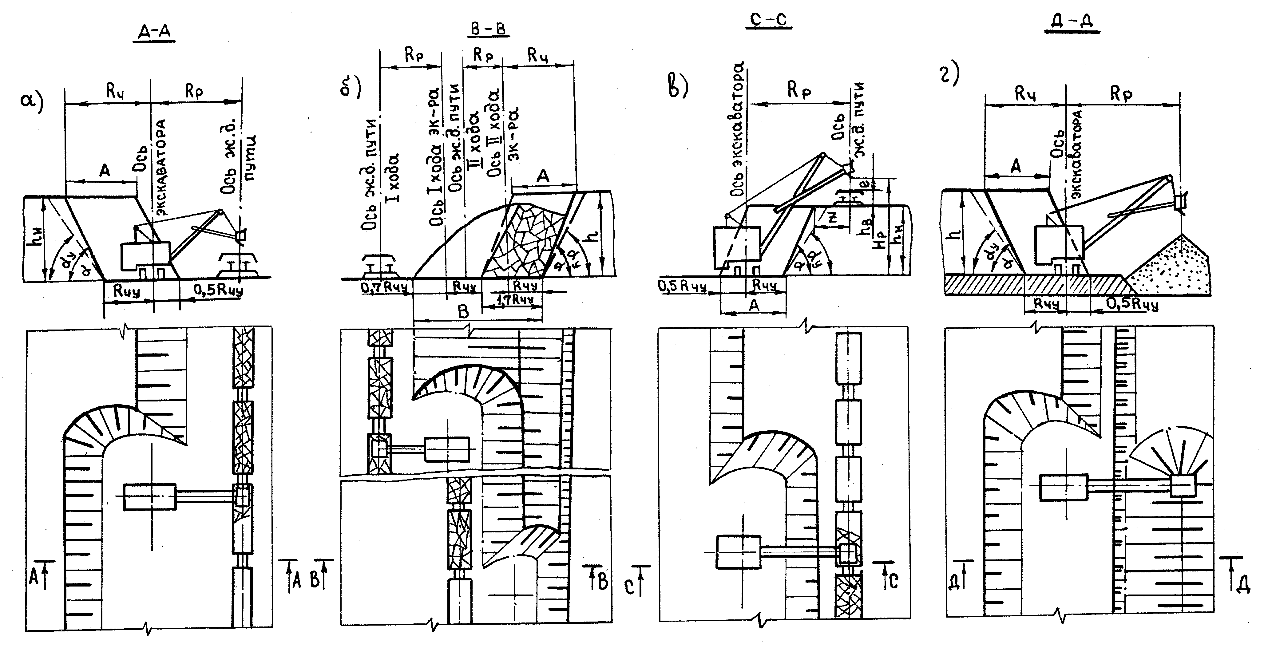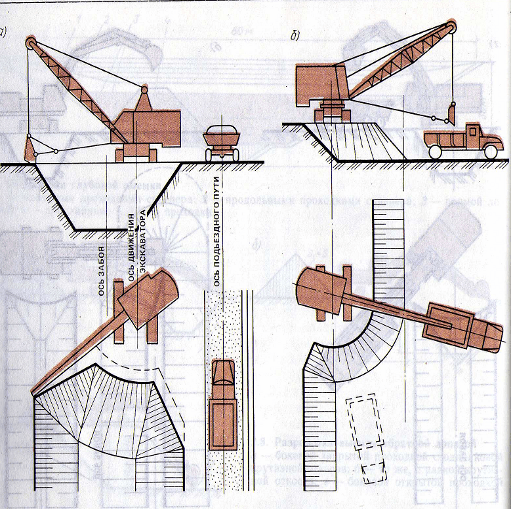 4). Применяется при разработке грунтов по одну сторону от оси проходки и погрузке грунта на транспортные средства.
