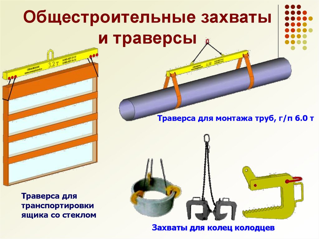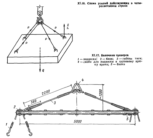 Указанные устройства крепят к крюкам кранов как за центральные части, так и за их концевые элементы.