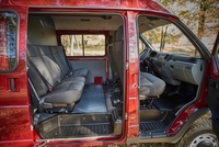 Коробка передач, естественно, механическая, пятиступенчатая, с длинной ручкой из пола. «Автомата» нет и не предвидится. Полный привод подключается классическим «кустом» рычагов: сначала подключение моста, потом пониженная передача. Из дополнительных опций – только вторая печка, включаемая отдельной шайбой, и кондиционер. У нас вариация «комби»: трое спереди, четверо сзади. Машина широкая, усесться в такой последовательности теоретически, конечно, можно, но «лишний» пассажир на переднем ряду может мешать водителю переключать передачи. Зато места для ног у всех – хоть слона в проход клади. Спать можно втроем: один спереди на сиденьях, один – сзади. И один с большим комфортом на полу посередине.