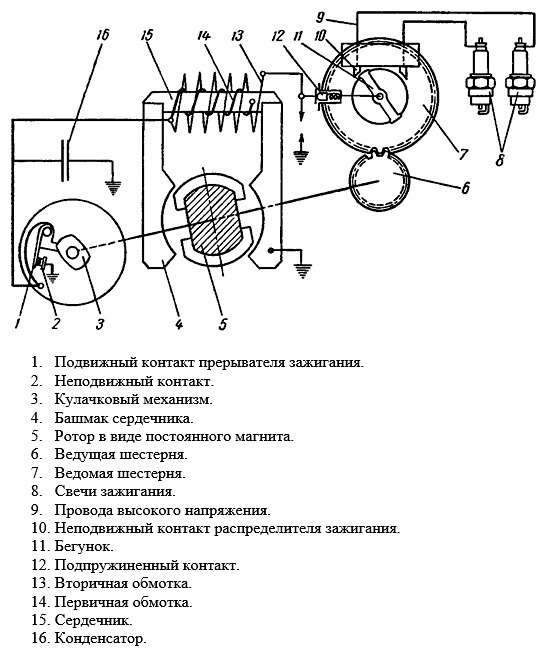 Замените смесь, не допуская повышенного, против указанного в руководстве, содержания масла – Переобеднение смеси вследствие подсоса воздуха через неплотности в соединении карбюратора с цилиндром двигателя. Подтяните соединение и в случае необходимости замените прокладку – Свеча зажигания не дает искру. Проверьте, имеется ли искра на наконечнике провода; при отсутствии искры замените свечу. Если на наконечнике провода искры нет, проверьте исправность провода и контактов. Если провод и контакты исправны, то неисправно магнето, в этом случае снимите магнето для ремонта – Неправильно установлен угол опережения зажигания. Установите угол опережения зажигания Двигатель не развивает полной мощности и работает с перебоями – Недостаточная компрессия вследствие износа поршневых колец. Замените изношенные кольца – Плохое уплотнение кривошипной камеры каркасными сальниками на полуосях коленчатого вала. Замените каркасные сальники – Недоброкачественная смесь бензина с маслом. Заправьте топливный бак пускового двигателя новой смесью надлежащего качества – Двигатель работает неустойчиво на холостом ходу: 1) Неправильная регулировка винта холостого хода.