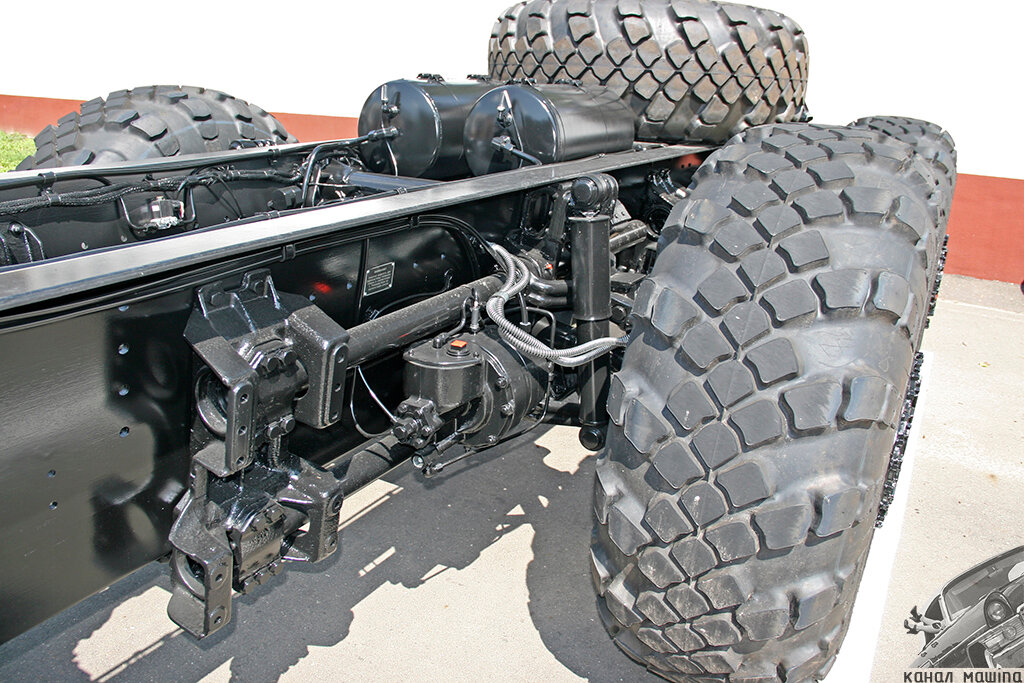 Размер шин – 7.00XR16-10PR; размер колёсных дисков – 5.50FX16 SDC-115. На задней оси колёса спаренные. Максимальный угол подъёма – 0,416 tg. Объём топливного бака – 100 литров дизтоплива.