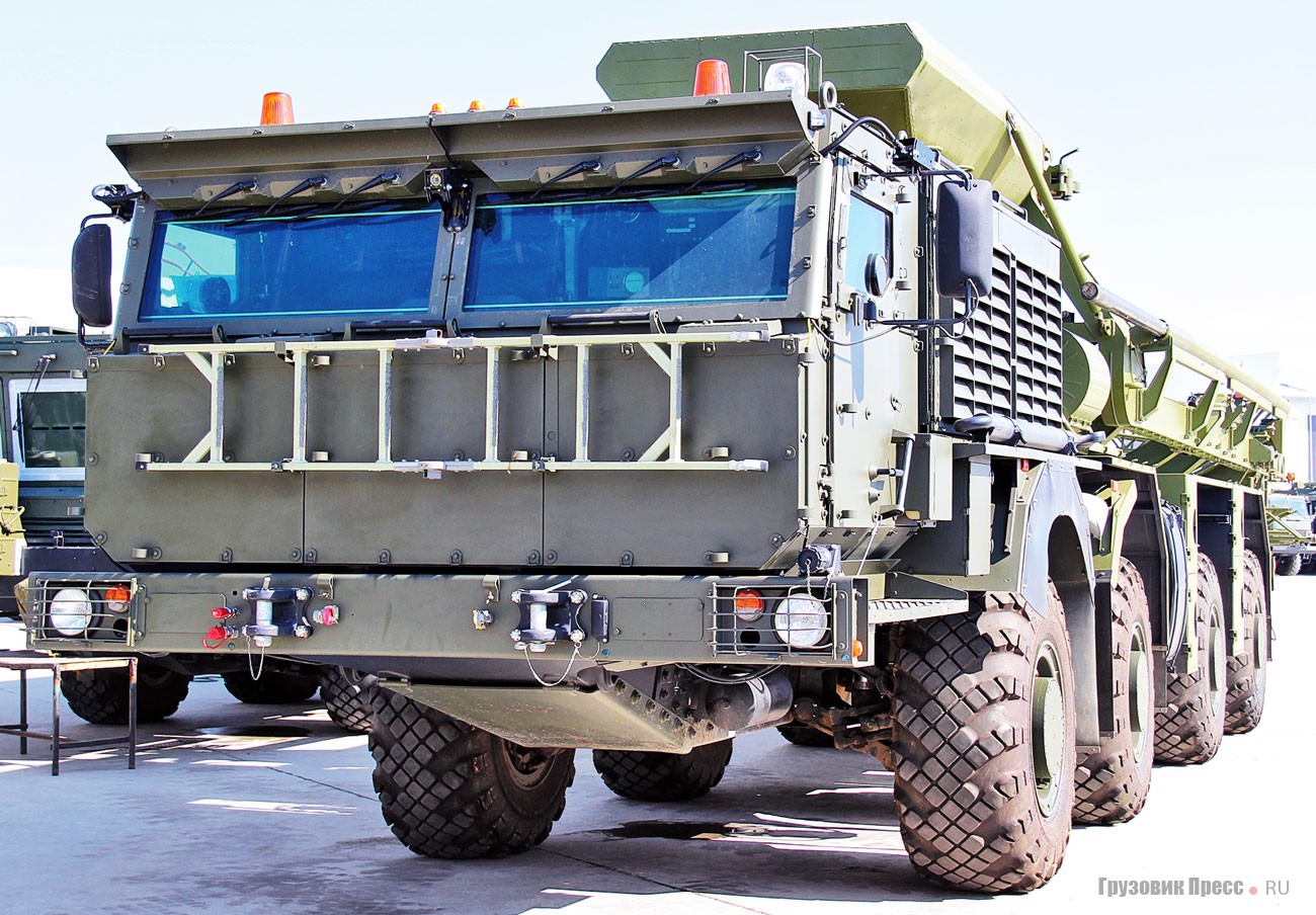 Напомню для непосвящённых, что на протяжении десятилетия в интересах Министерства обороны Российской Федерации (МО РФ) ведётся разработка специальных колёсных шасси и колёсных тягачей (СКШТ) с нетрадиционными техническими решениями, включающими модульную компоновку, электромеханическую трансмиссию (ЭМТ), всеколёсное рулевое управление, длинноходовую управляемую подвеску колёс, систему автоматизированного управления движением. Предполагалось, что в новой разработке будут использованы все заделы, полученные ранее в ходе научно-исследовательских работ (НИР). Основная цель – создать отечественные СКШТ для автономных пусковых установок перспективных подвижных грунтовых ракетных комплексов; предполагалось заменить шасси производства Минского завода колёсных тягачей (МЗКТ).