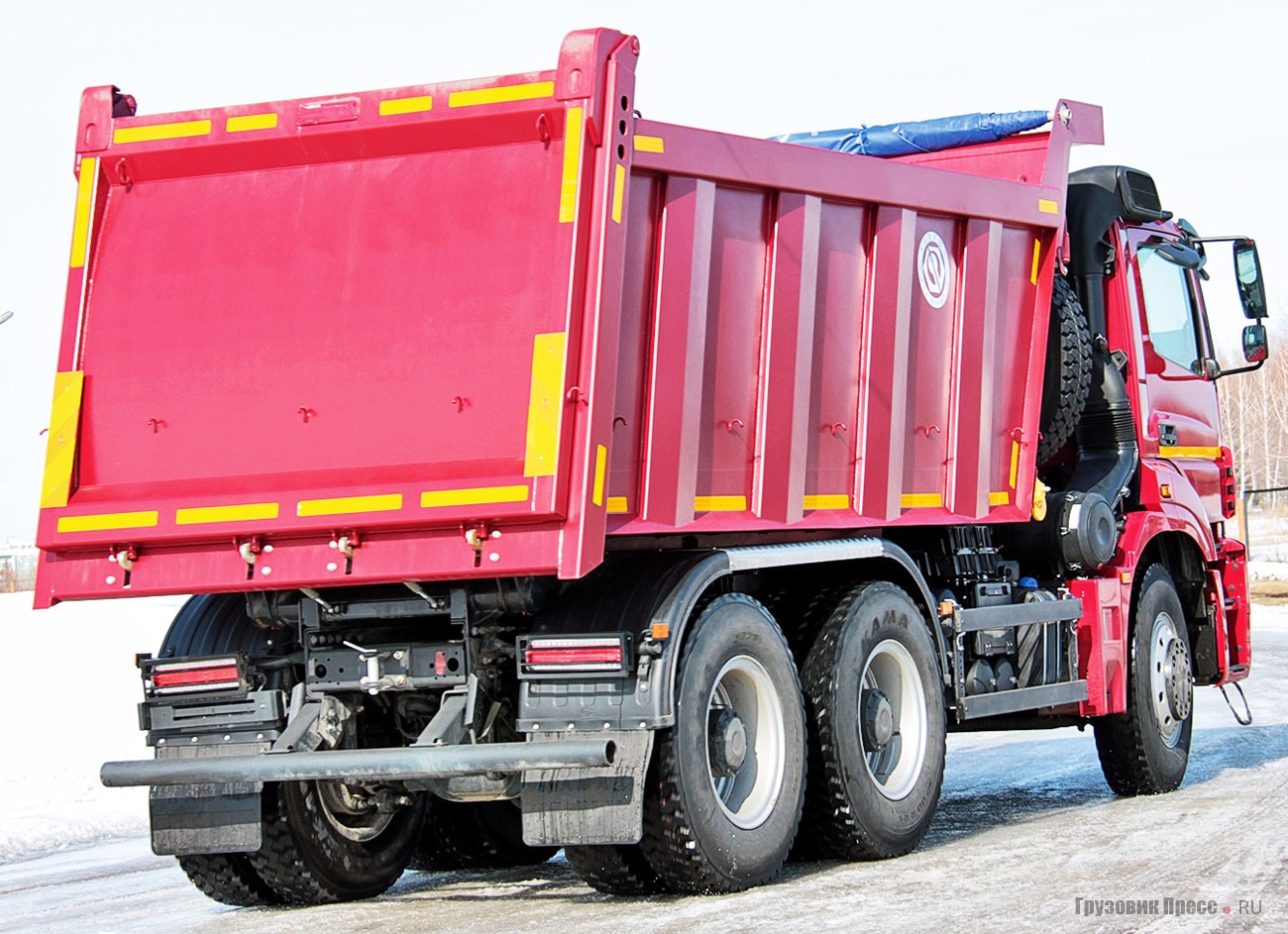 Главная интрига нового самосвала в том, что новая кабина по мотивам «Аксора» и даже схожая маркировка отнюдь не означают однотипность или принадлежность «Мерседесу» шасси и (или) силовой линии. Так вот, у наших красавцев-самосвалов грузоподъёмностью 26 т (6х4) или 25 т (6х6) под кабиной прячется уже другой, более мощный 12-литровый Cummins ISG12Е5 пятого экологического класса, способный выдать на гора 419 «лошадей». Этот мотор поступает из Китая, и совместное предприятие «Камминз Кама» выступает здесь в качестве поставщика. Серия ISG12, представляющая новую глобальную платформу Heavy-Duty, была разработана в США (впервые презентована в сентябре 2013 года), состоит из рядных шестицилиндровых моторов, рабочим объёмом 10,5 и 11,8 л, которые отличаются компактными размерами и небольшой массой.