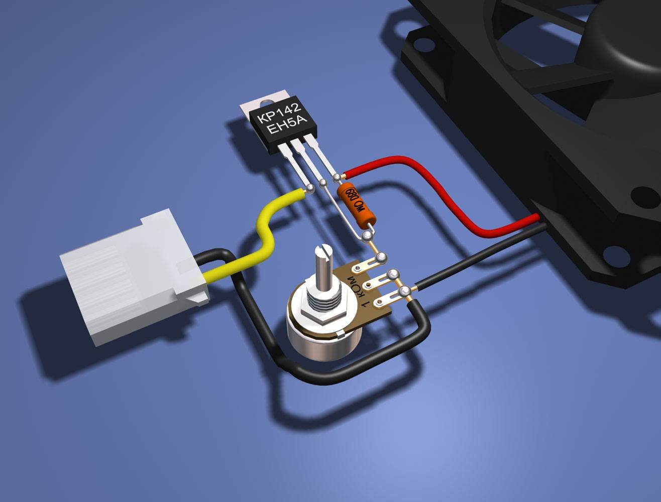 Вариант 1. Сопротивление резистора 10 кОм – это стандарт для установки регулятора, провода в схеме подключаются по принципу: 1 и 2 клемма для питания, 3 и 4 для нагрузки – ток распределится правильно по нужным полюсам, радиатор устанавливать нужно – чтобы защитить от перегрева, транзистор использован КТ 815 – такой всегда подойдет.