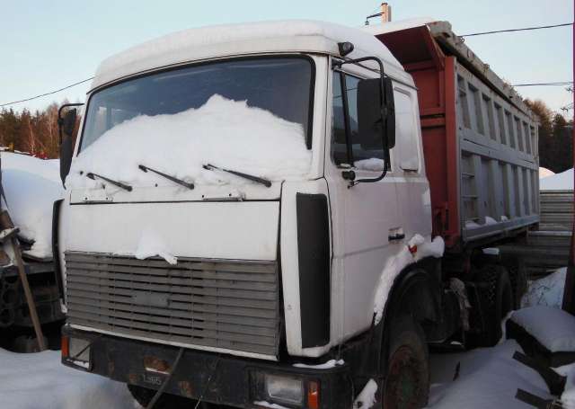 Самосвал МАЗ 5516. Также включен трейлер. Прицеп изношен.