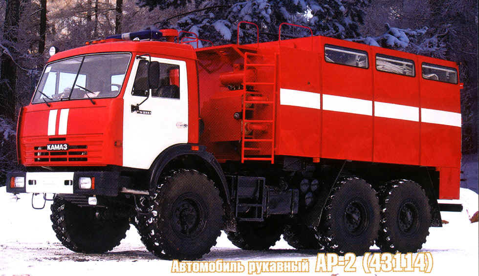 Автомобиль пожарный рукавный АР-2 (43114) предназначен для оснащения подразделений пожарной охраны рукавами при тушении пожаров в крупных населенных пунктах и на промышленных объектах. Автомобиль работает в комплексе с передвижной насосной станцией и служит для прокладывания магистральных рукавных линий от насосной станции, которая устанавливается на водоеме, к месту пожара. При необходимости производится подача воды или воздушно-механической пены на источник горения с помощью собственного стационарного лафетного ствола.
